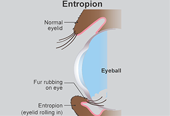 Liečba závisí od veku pacienta, závažnosti stavu, plemena a príčiny. Ak je entropium spôsobené bolestivým očným ochorením, môžeme zvážiť odstránenie zdroja bolesti a najprv liečbu základného ochorenia, potom prehodnotenie polohy očného viečka.